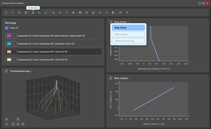 Интерактивные графики предназначены для просмотра результатов проектирования профиля скважины.